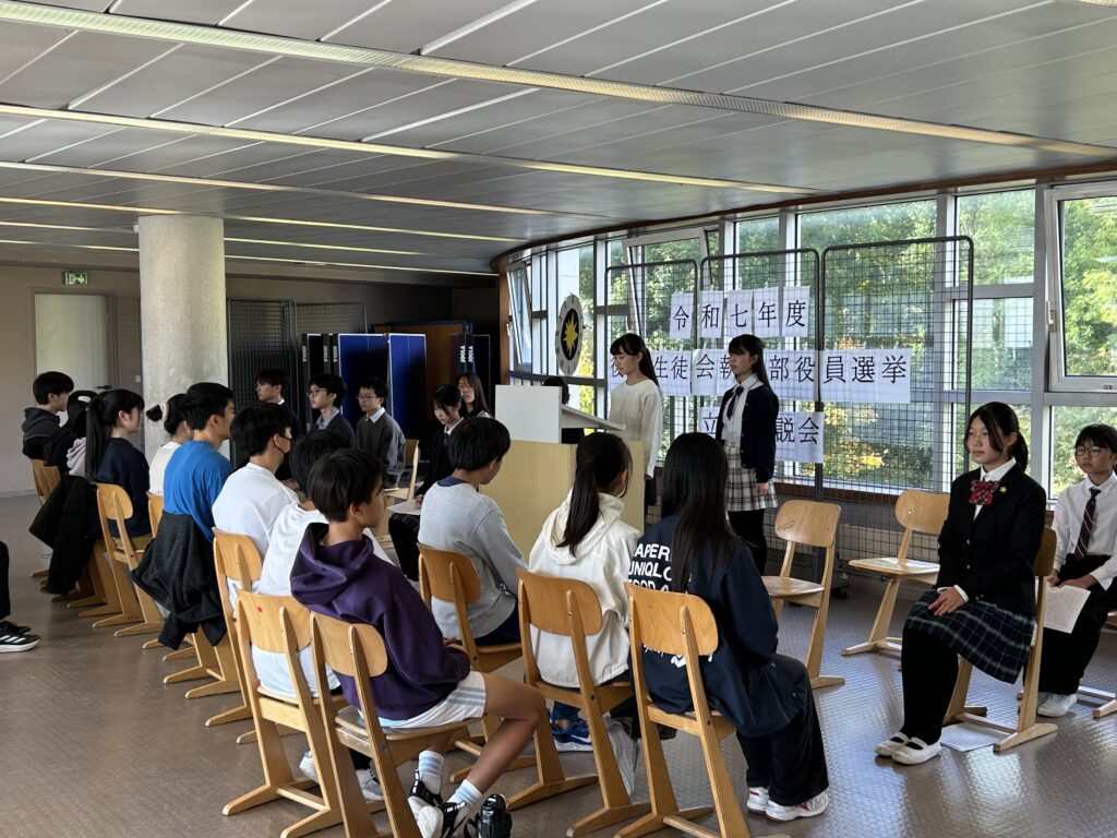 本日、生徒会執行部役員選挙立会演説会が行われました。立候補者は「どんな学校にしていきたいか」「そのための公約」等を堂々と発表していました。日本の政局ともかぶり、関心も高まったのではないかと思います。リーダーシップとフォロアーシップとよく言われます。どちらかだけでは生徒会活動は進んでいきません。全員協働でより良い学校を創り上げていきましょう。
